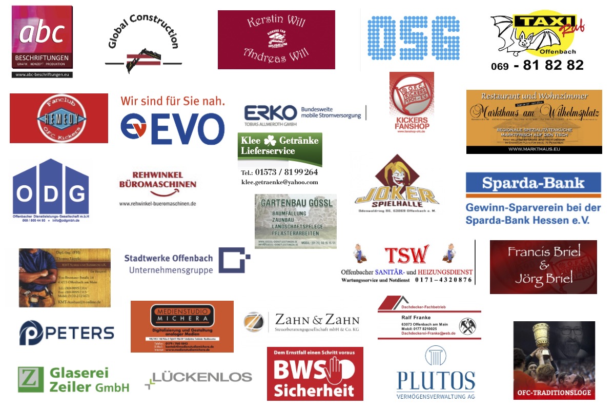 An dieser Stelle möchten wir uns recht herzlich bei all unseren Sponsoren bedanken, die uns durch ihre finanzielle Unterstützung ungemein weiterhelfen, unsere Möglichkeiten und Grenzen erweitern zu können. Durch Ihre Hilfe leisten Sie einen notwendigen Beitrag zur Förderung unserer Museumsarbeit. Gemeinsam mit Ihnen können wir die Geschichte und Tradition von Kickers Offenbach aufrechterhalten. Das Vertrauen, das Sie der Arbeit der vielen ehrenamtlichen Helfer entgegenbringen, wissen wir sehr zu schätzen. Vielen Dank dafür!